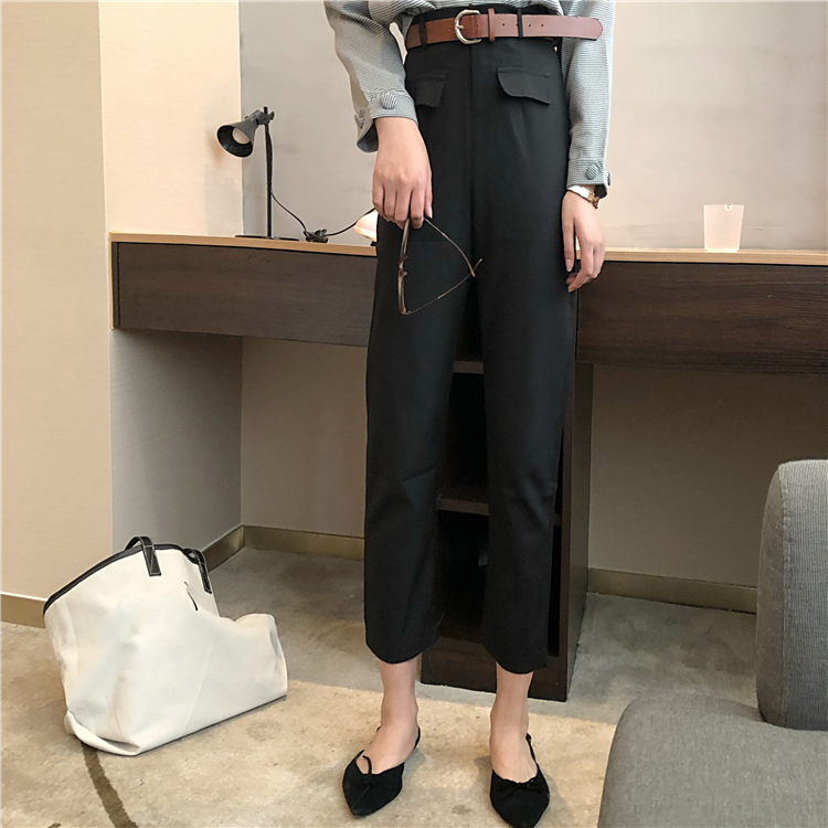/ 2018新款韓版時尚套裝chic復古翻領格子小西裝外套休閑褲配皮帶潮