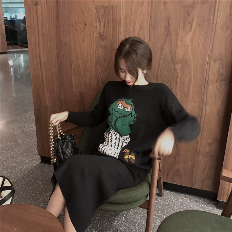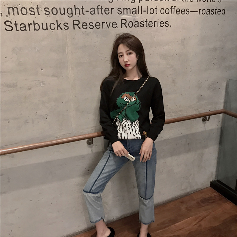 時尚慵懶風套頭毛衣女2018新款秋冬韓版可愛卡通百搭寬松版針織衫