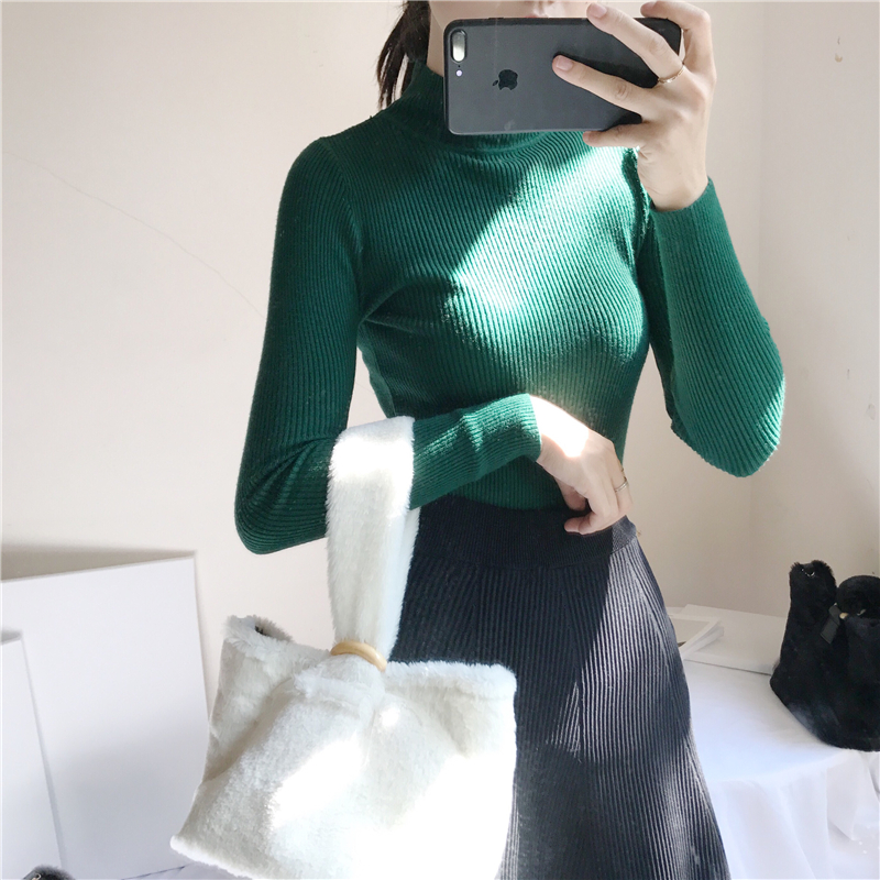 純色半高領套頭毛衣打底衫女秋冬2018新款韓版百搭修身緊身針織衫