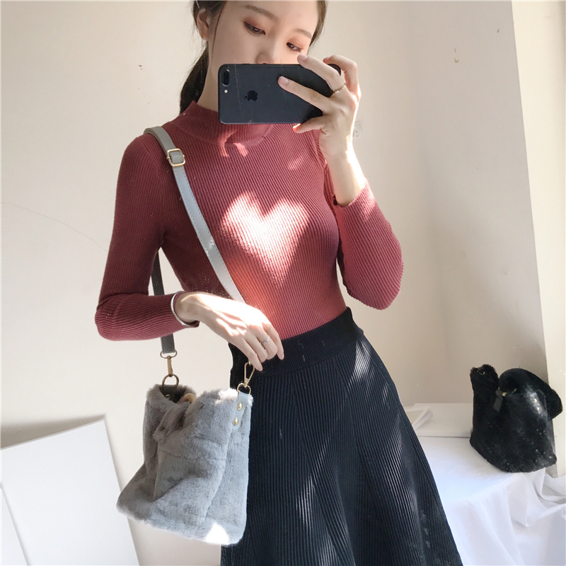 / 韓版秋冬基礎款慵懶風毛衣女套頭半高領針織打底衫內搭長袖上衣潮