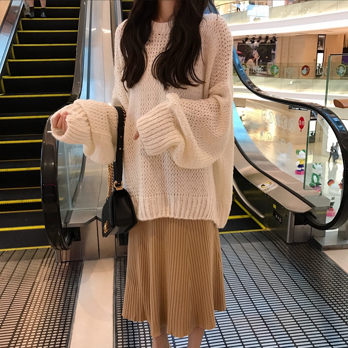 / 2018新款chic慵懶風寬松套頭毛衣高腰包臀針織毛線半身長裙套裝女
