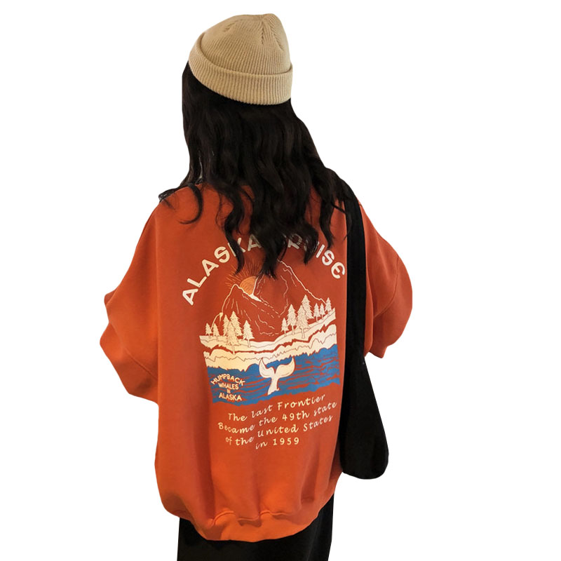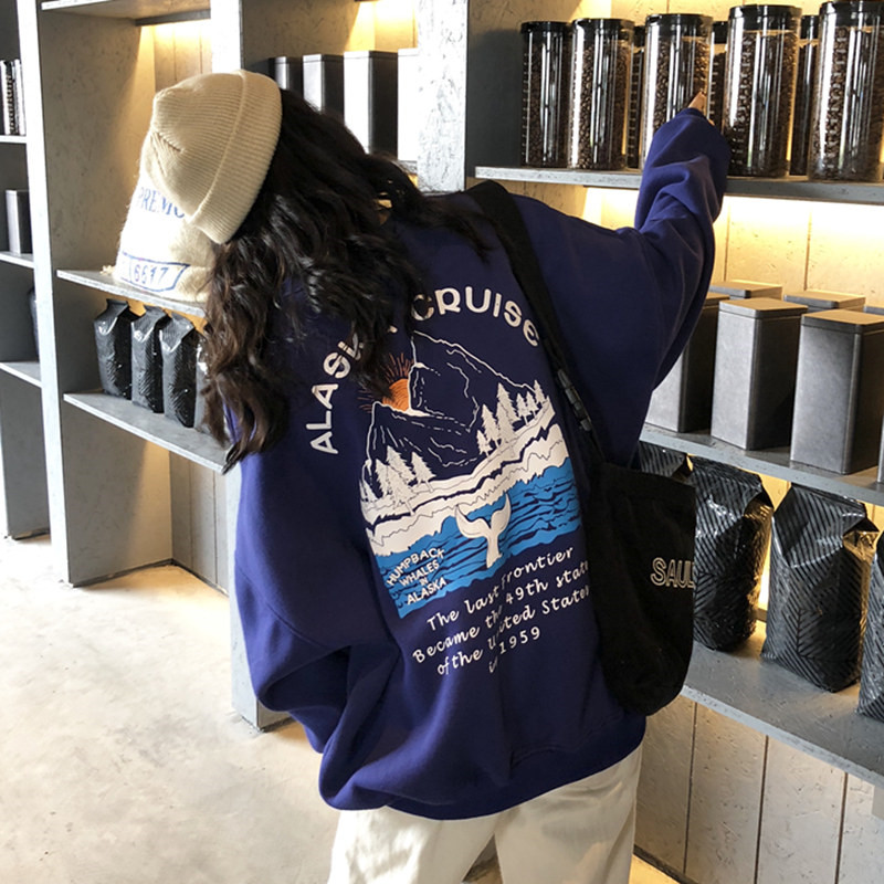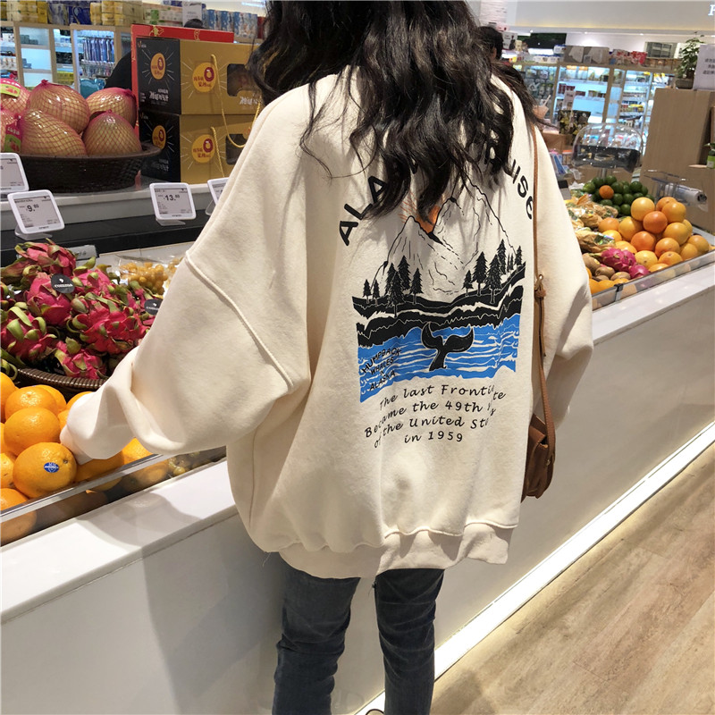 / 2018新款秋冬女裝韓版中長款原宿風字母卡通寬松加絨加厚衛衣外套