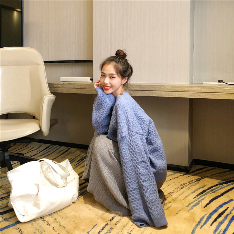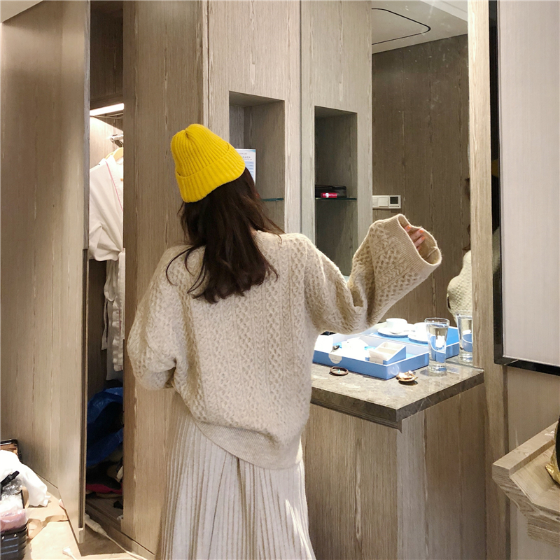 落肩長袖的設計,增加了一絲慵懶氣質,溫暖感更甚