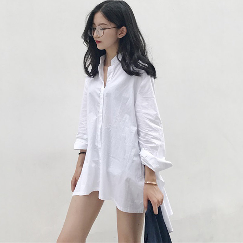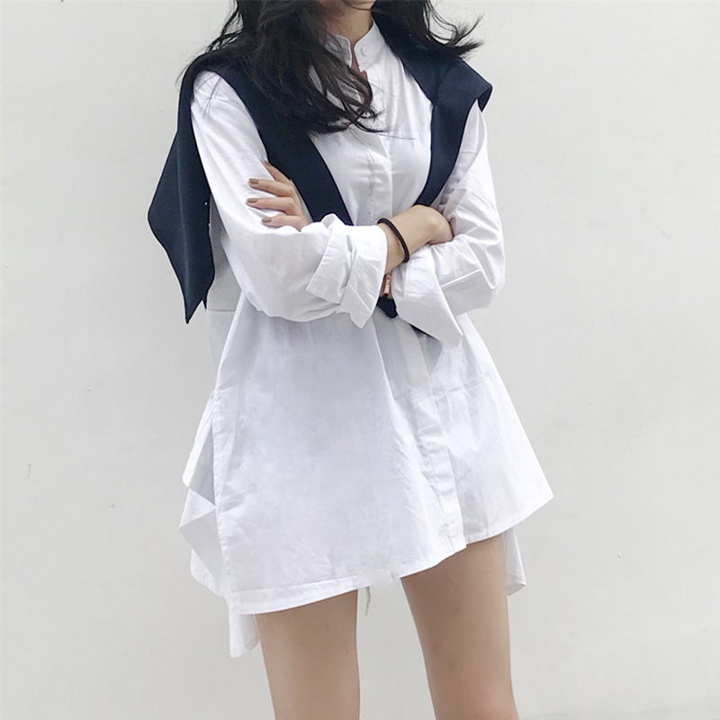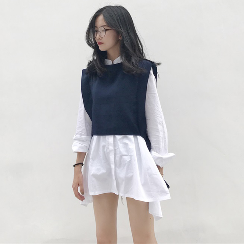 / 兩件套裝女裝早秋新款韓版寬松顯瘦側開叉長袖襯衣+純色披肩馬甲