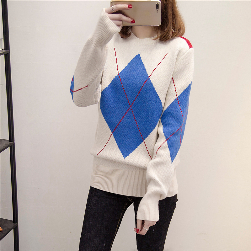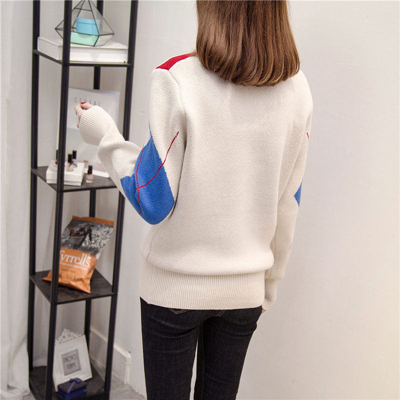 / 拼色短款毛衣女套頭寬松長袖針織衫秋冬季打底衫拼色加厚上衣外套