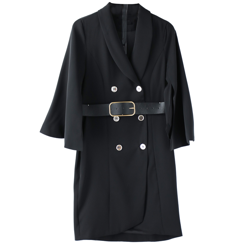 / 歐洲站名媛氣質西裝連衣裙2018秋新款收腰顯瘦中長款雙排扣冷淡風