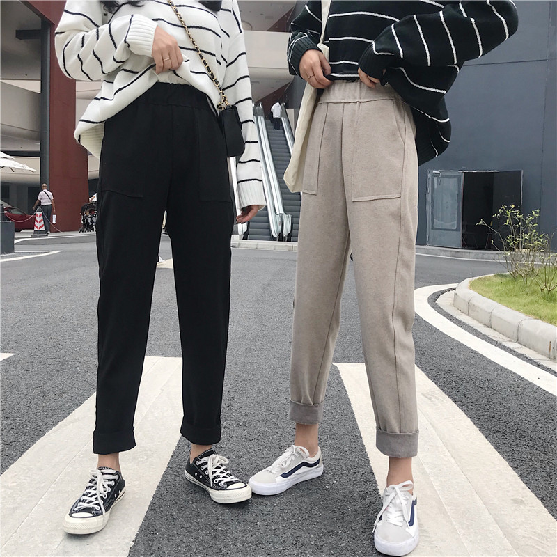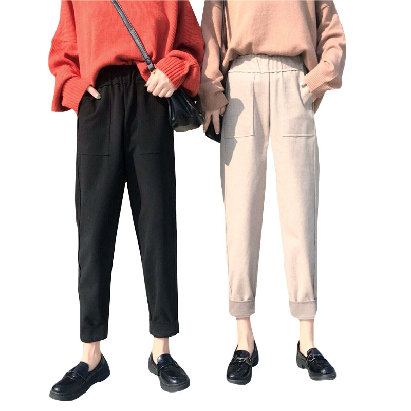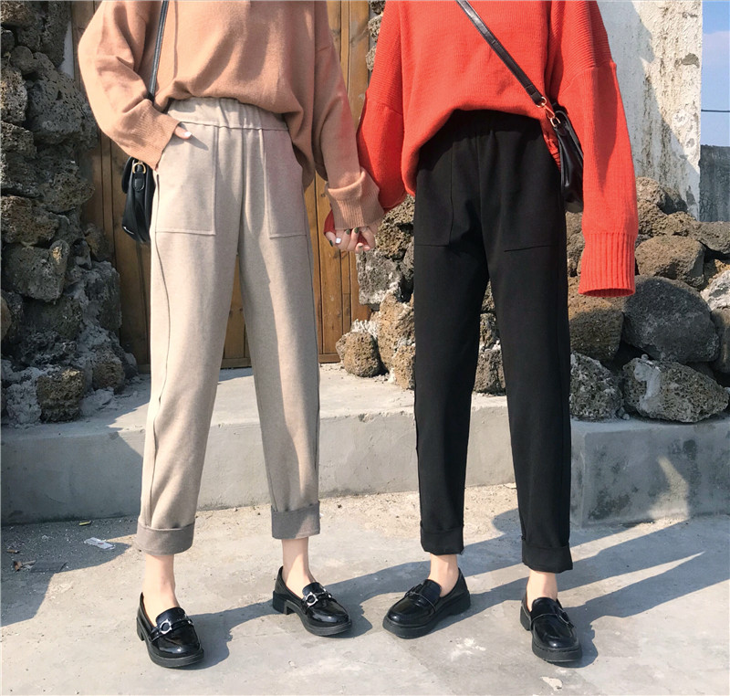 / 秋冬女裝韓版寬松加厚毛呢休閑褲高腰哈倫褲直筒褲九分褲學生褲子