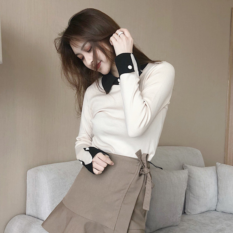/ 冷系修身針織衫秋裝女2018新款韓版時尚翻領拼色打底毛衣洋氣上衣