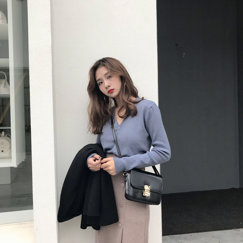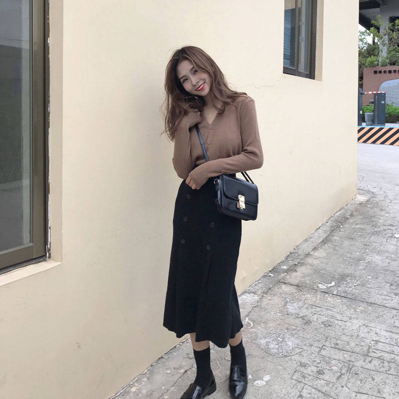 7716藍色上衣+淺咖啡半身裙|7716駝色上衣+黑色半身裙