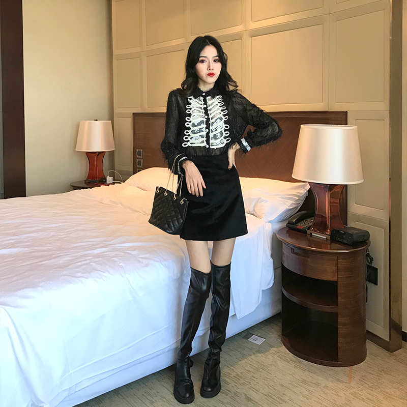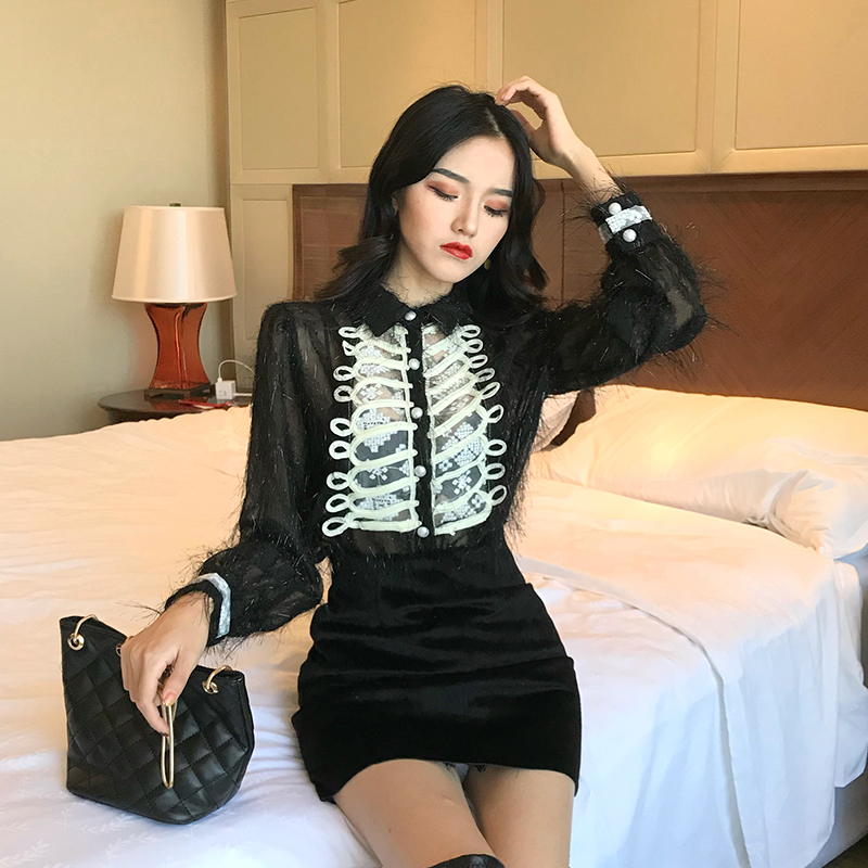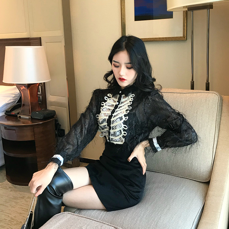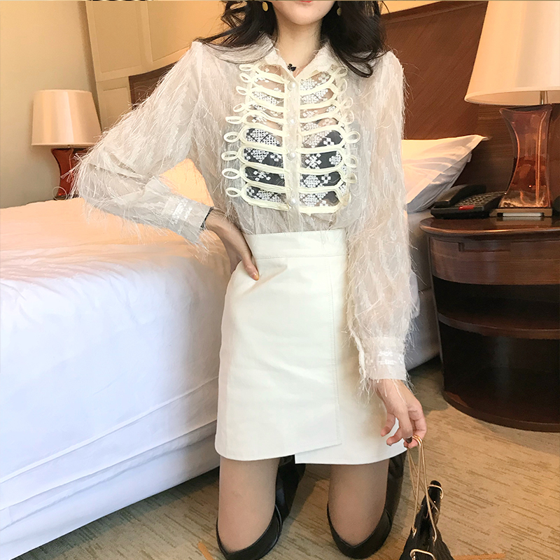 / 洋氣時尚新款韓版秋冬百搭流蘇邊設計感毛毛蕾絲拼接chic氣質上衣
