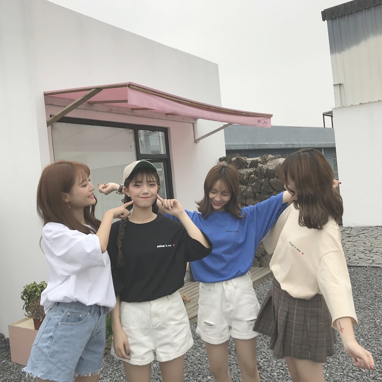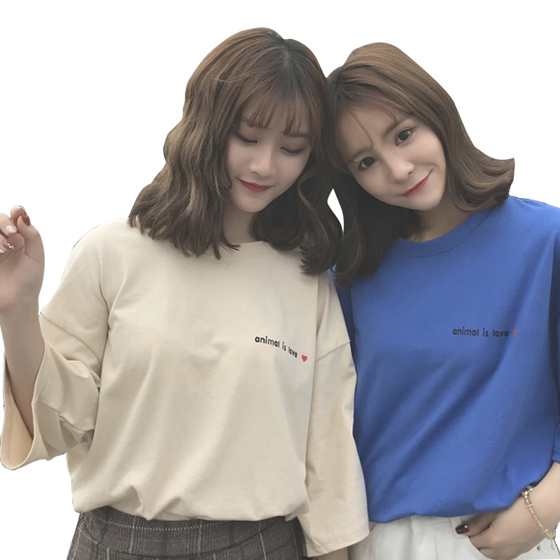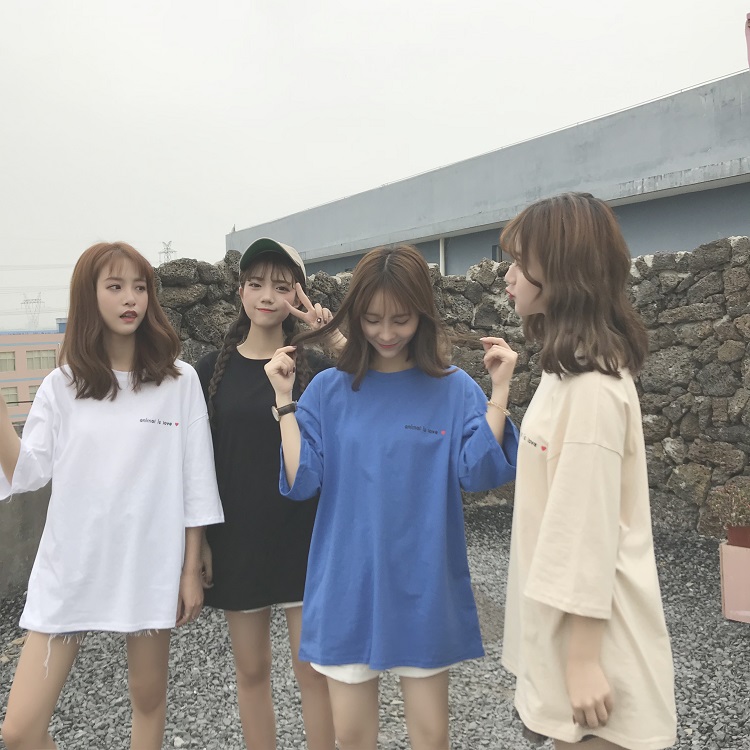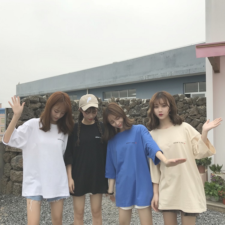 / 春夏女裝韓版寬松百搭簡約中長款中袖T恤學生短袖打底衫上衣體恤