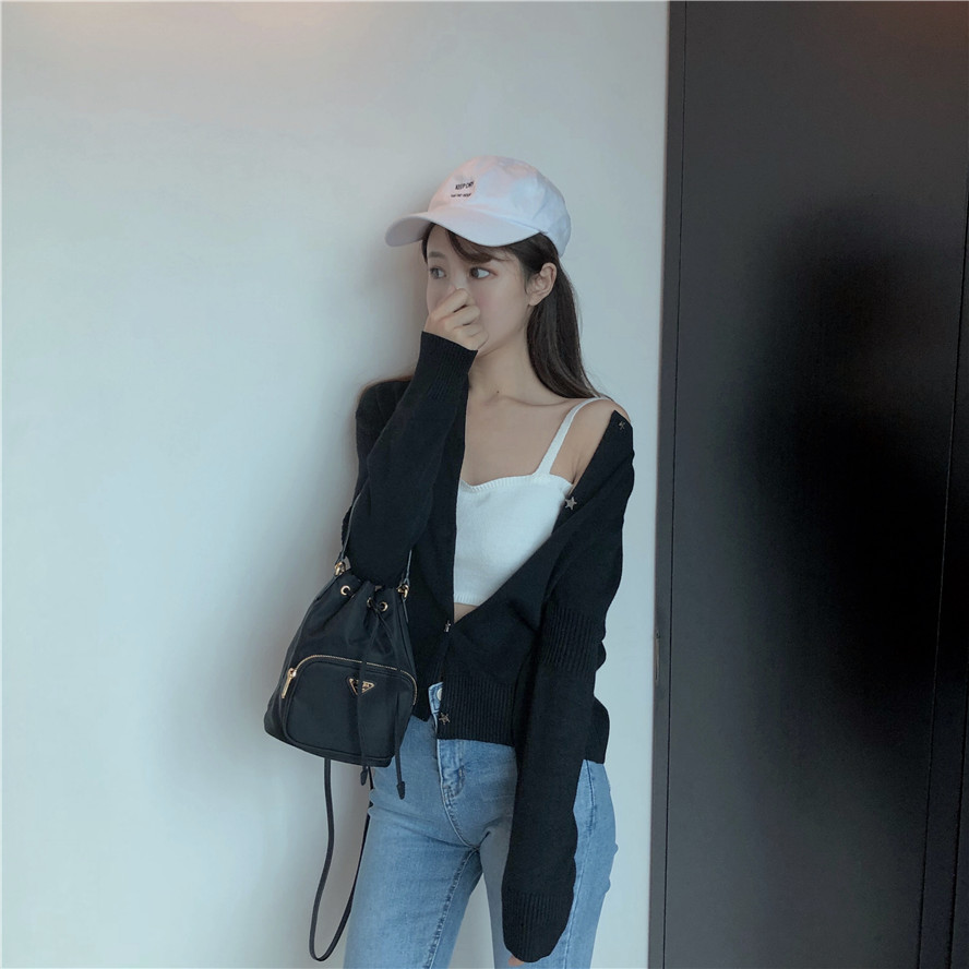 韓版寬松百搭V領針織開衫秋季毛衣外搭氣質長袖高腰短款小外套潮