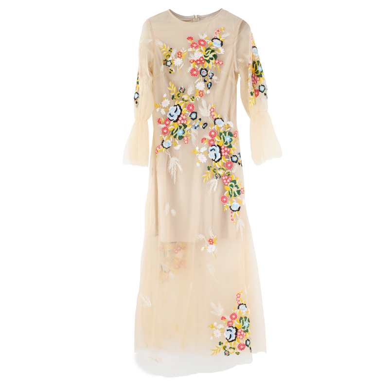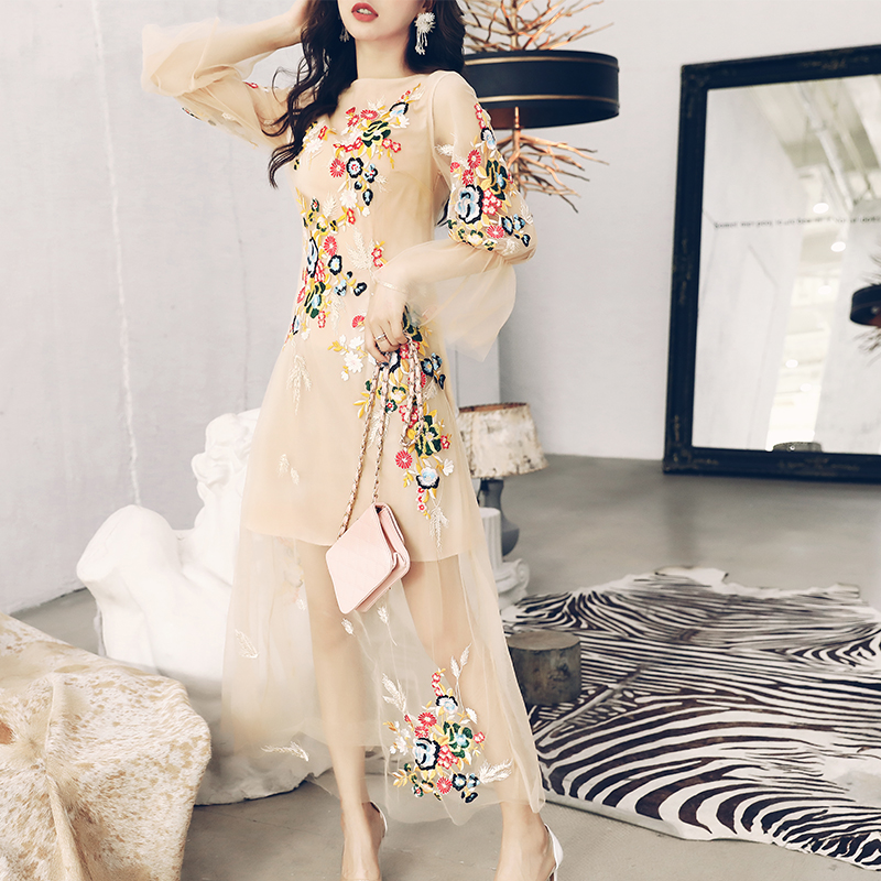 / 名媛網紗氣質慵懶連衣裙女2018秋季新款重工刺繡高腰公主長裙子