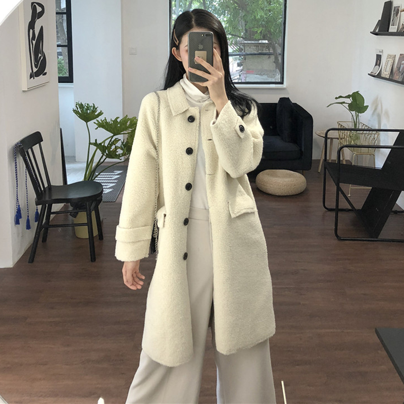 / chic時尚中長款流行大衣女秋冬裝2018新款韓版寬松翻領羊羔毛外套