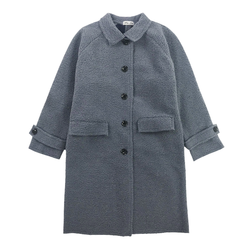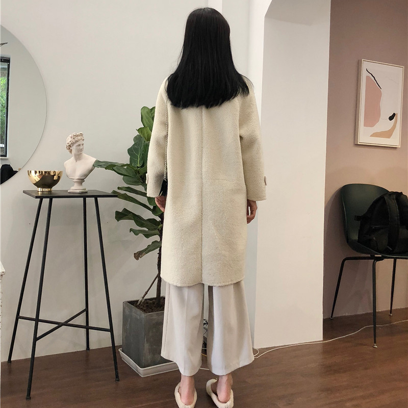 chic時尚中長款流行大衣女秋冬裝2018新款韓版寬松翻領羊羔毛外套