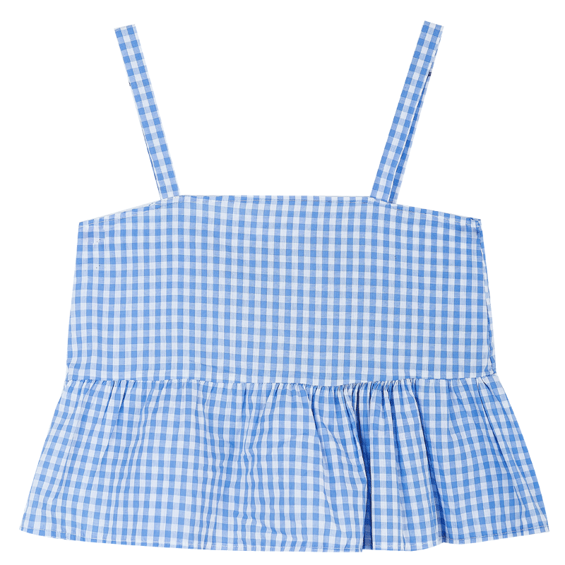 推薦一款敲甜美的小背心給你們,格子吊帶上衣,清新的格調, 飄逸的輪廓