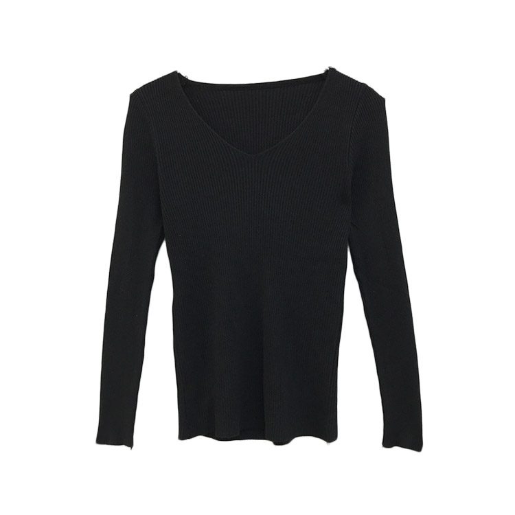 時尚韓風早秋毛衣女2018新款純色V領長袖顯瘦百搭基礎打底衫上衣