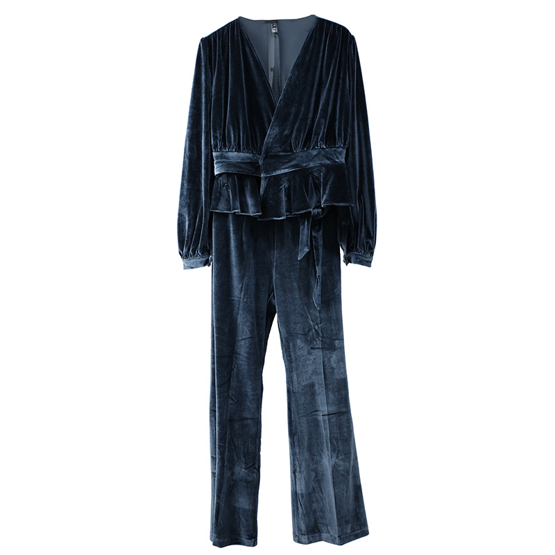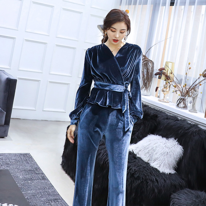大氣絲絨套裝女時尚外套2018新款秋季洋氣休閑長褲金絲絨兩件套潮