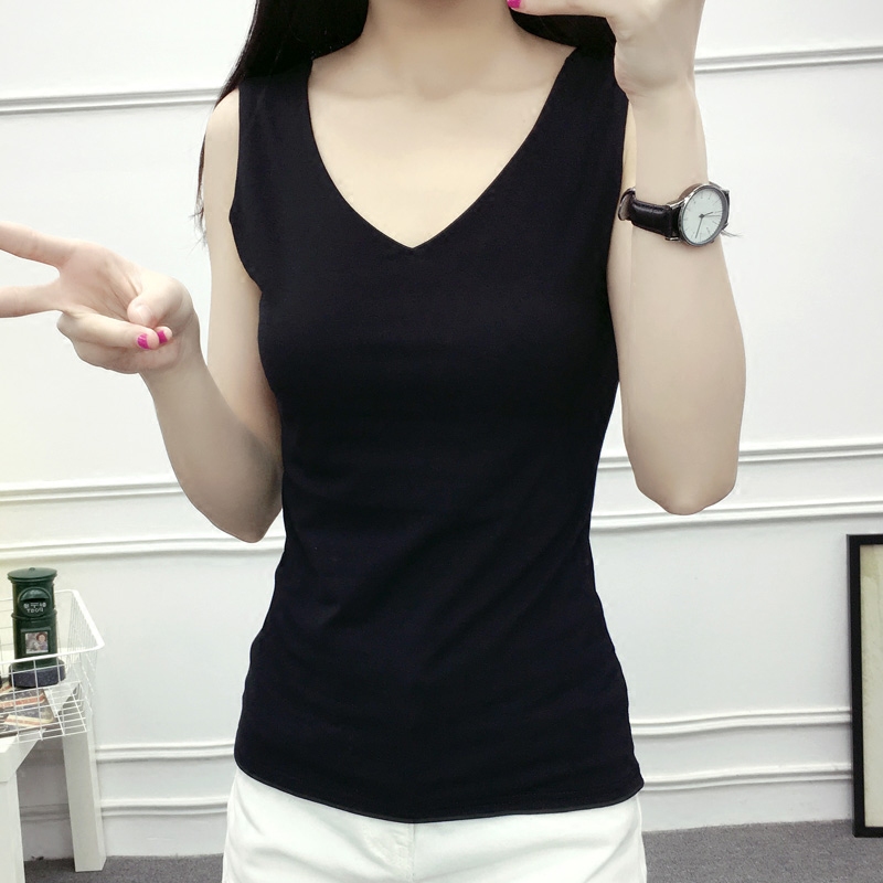 / 背心女吊帶夏裝新款百搭修身顯瘦工字棉純色v領打底衫上衣
