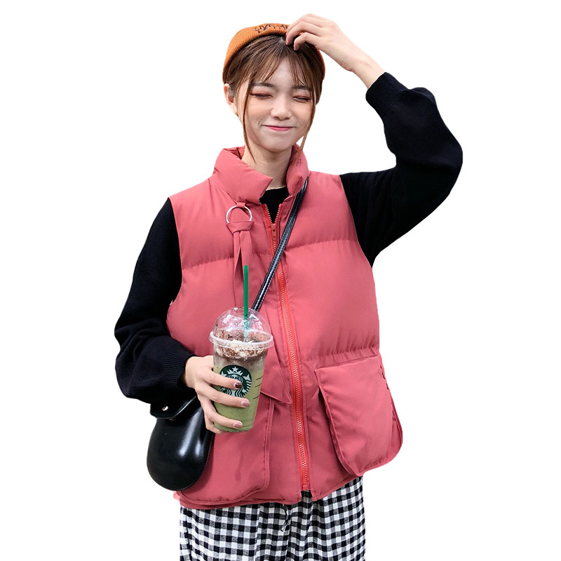 2018新款冬季韓版寬松夾棉加厚保暖面包服無袖棉衣棉服馬甲外套女