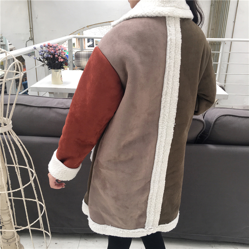 羊羔毛拼接撞色棉衣2018冬季女裝新款寬松顯瘦棉襖加厚保暖外套潮