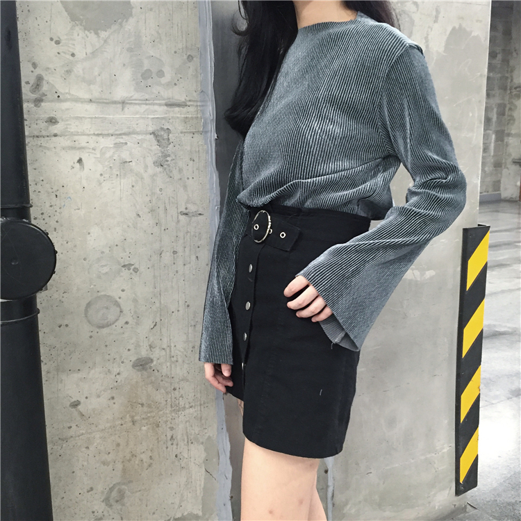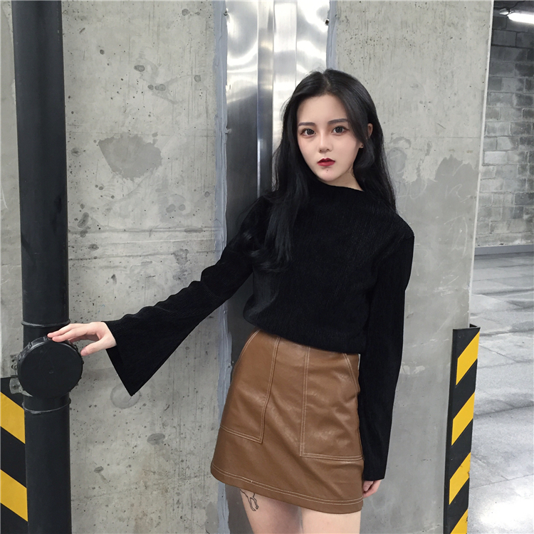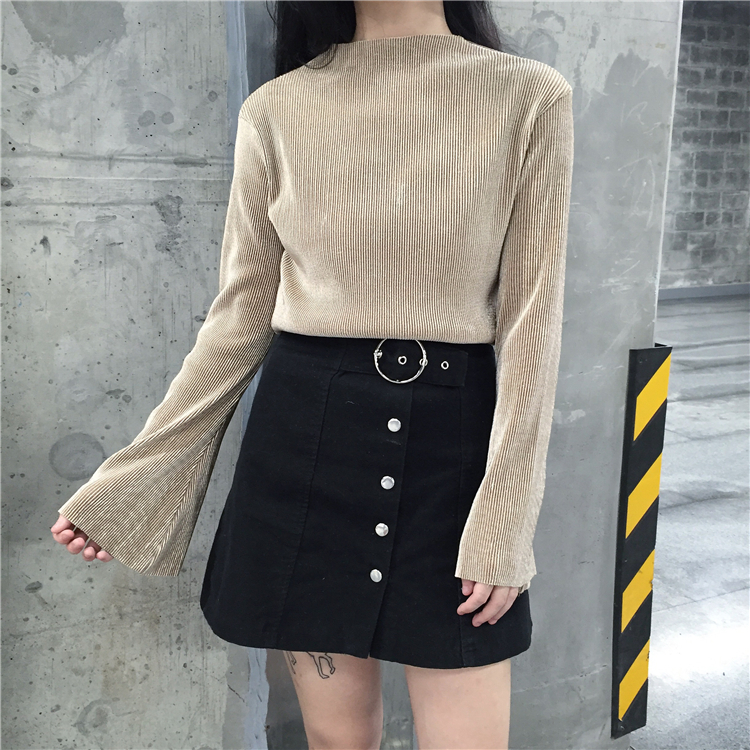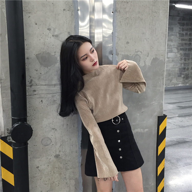 / 秋款韓國純色百搭時尚喇叭袖套頭寬松顯瘦長袖上衣衛衣女