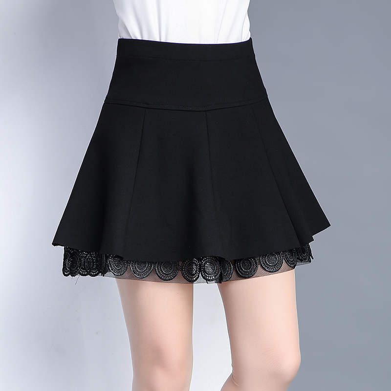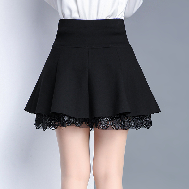 / 春秋新款短裙蓬蓬裙高腰蛋糕裙松緊腰修身顯瘦黑色百褶裙子