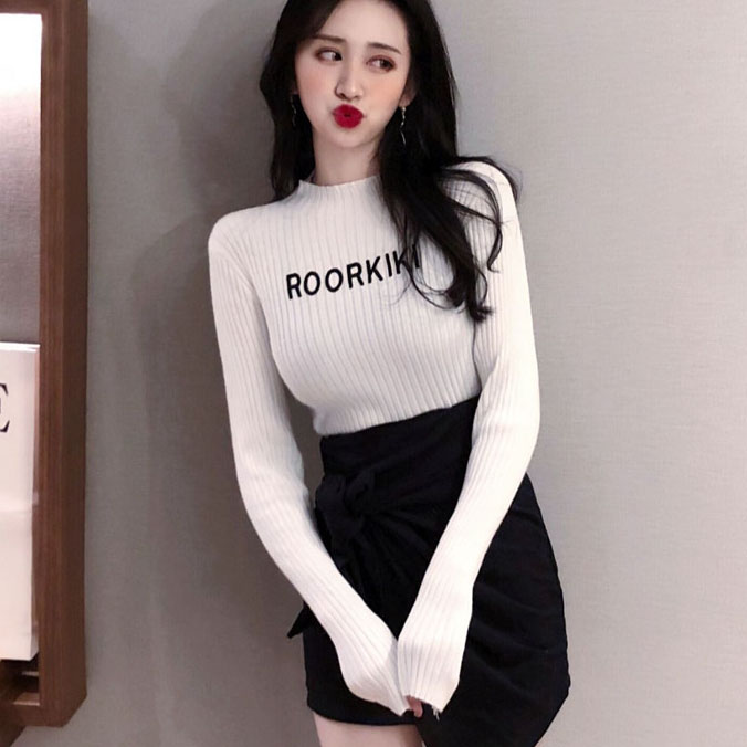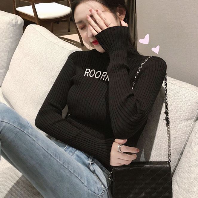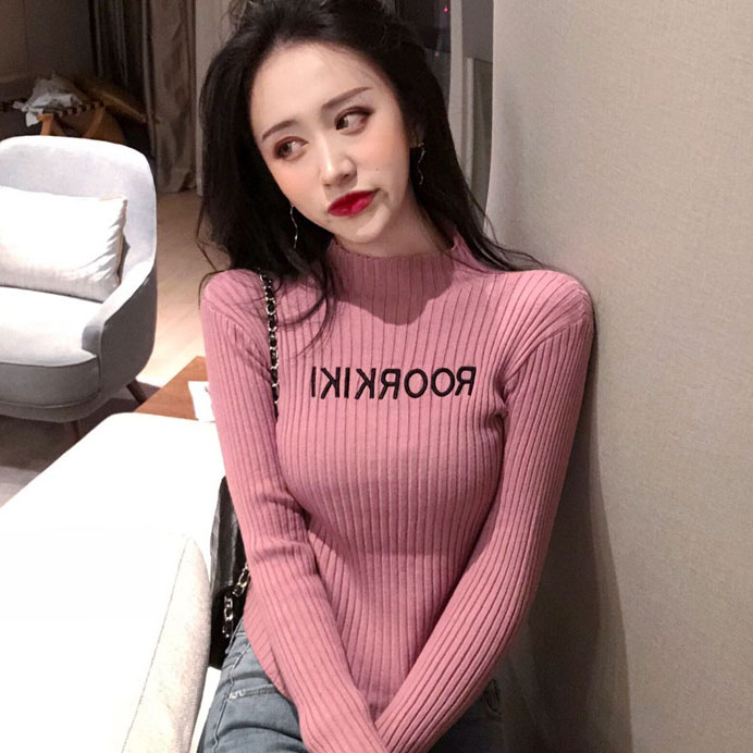 復古慵懶風套頭毛衣女2018新款秋冬修身百搭長袖半高領打底針織衫