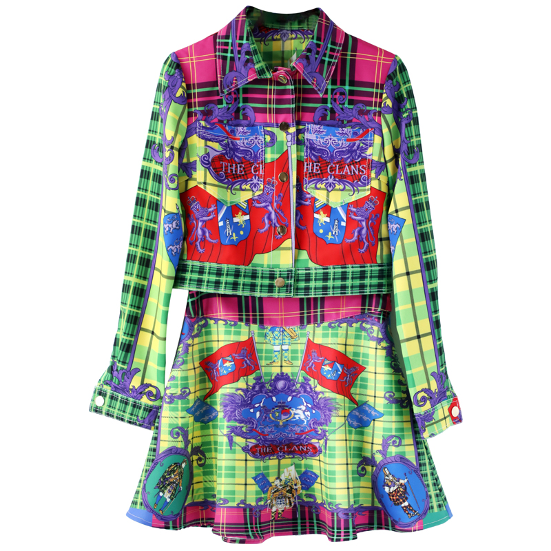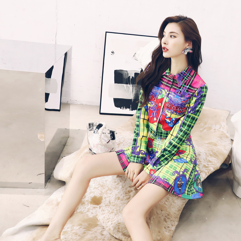 / 2018秋季新款長袖印花襯衫上衣半身短裙網紅休閑兩件套套裝女潮