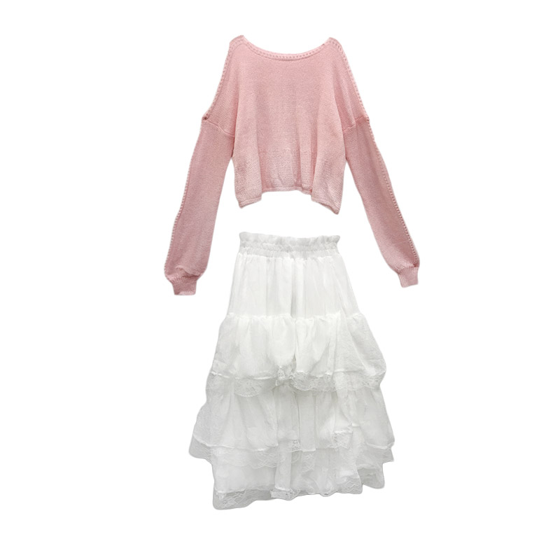 粉色毛衣|藍色毛衣|白色蕾絲蛋糕裙