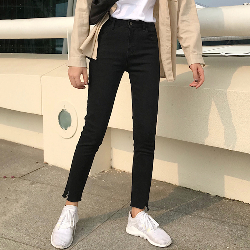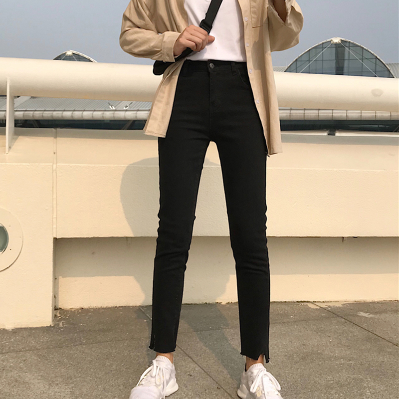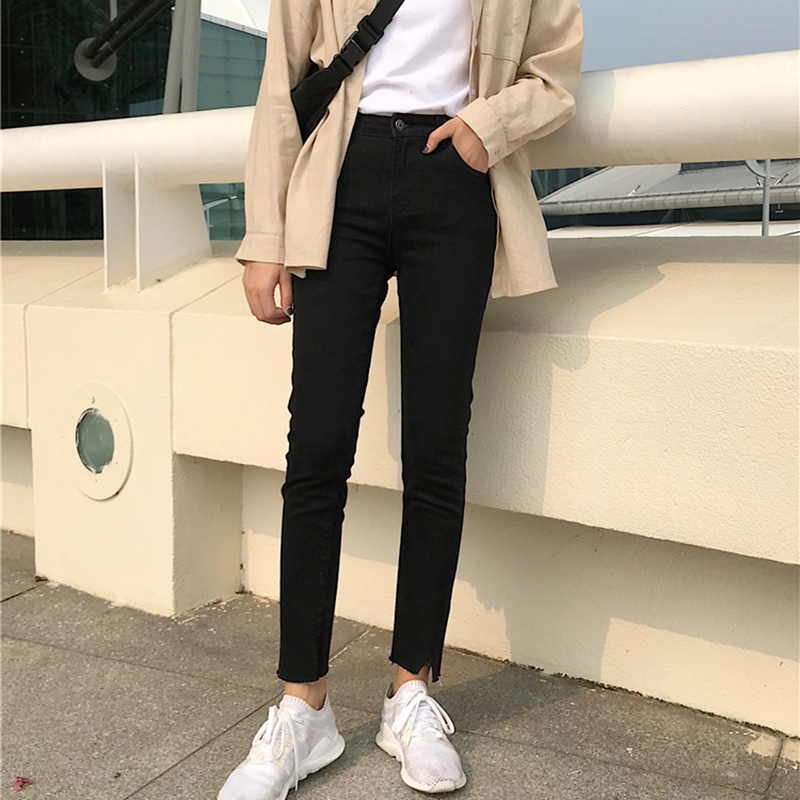 學生黑色牛仔褲秋裝女2018新款修身顯瘦鉛筆褲百搭高腰緊身打底褲