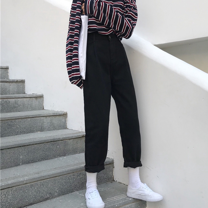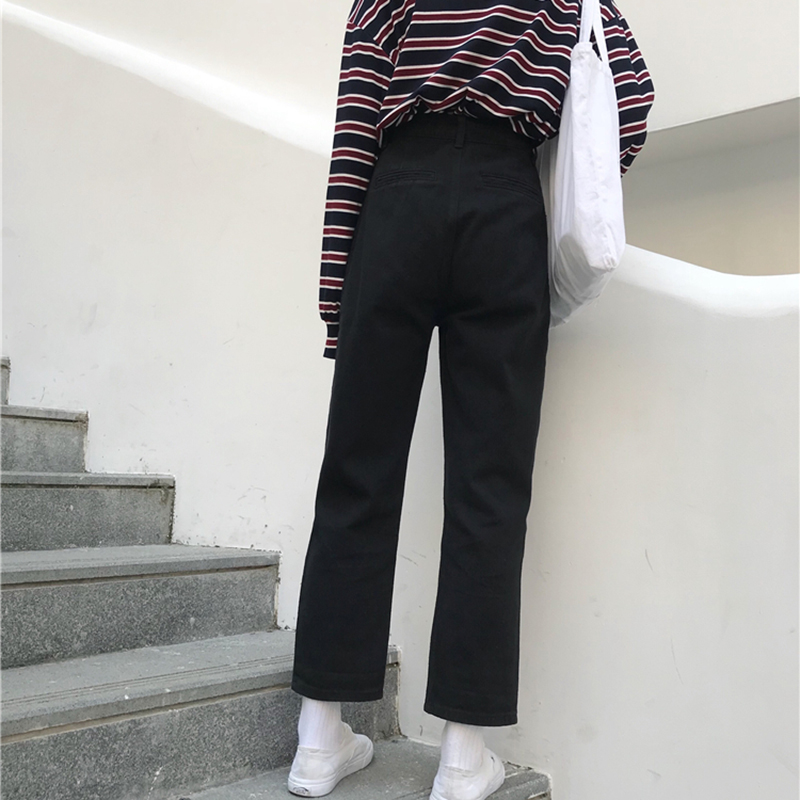 / 牛仔褲秋季2018新款女裝韓版高腰寬松直筒褲學生潮流黑色九分褲子