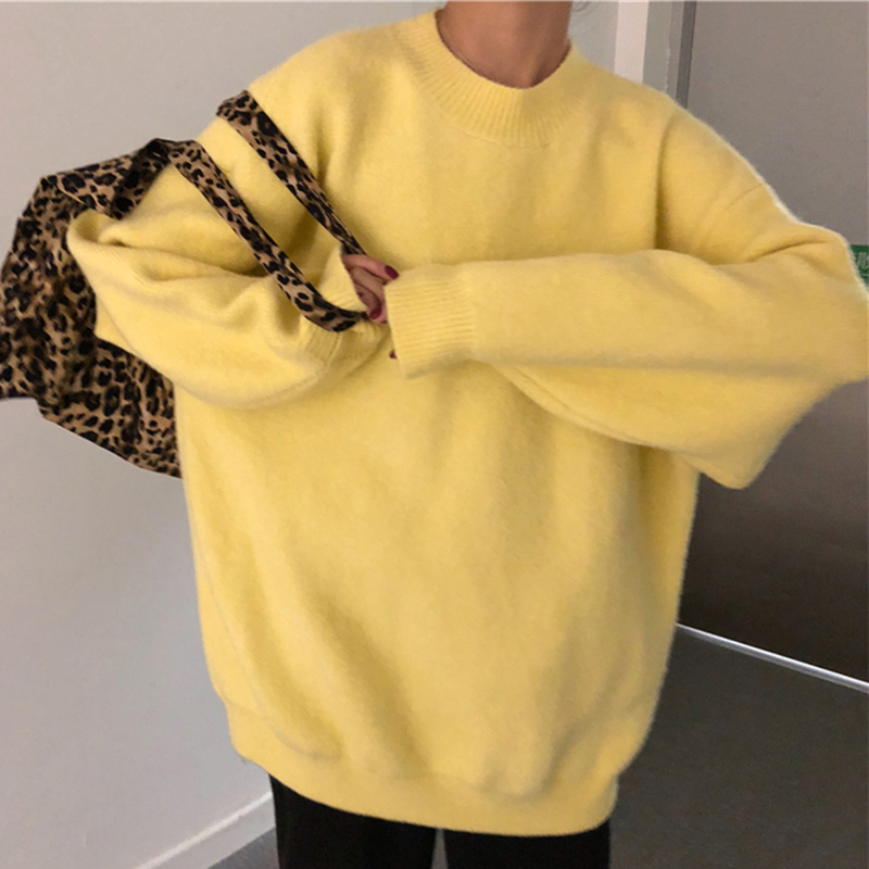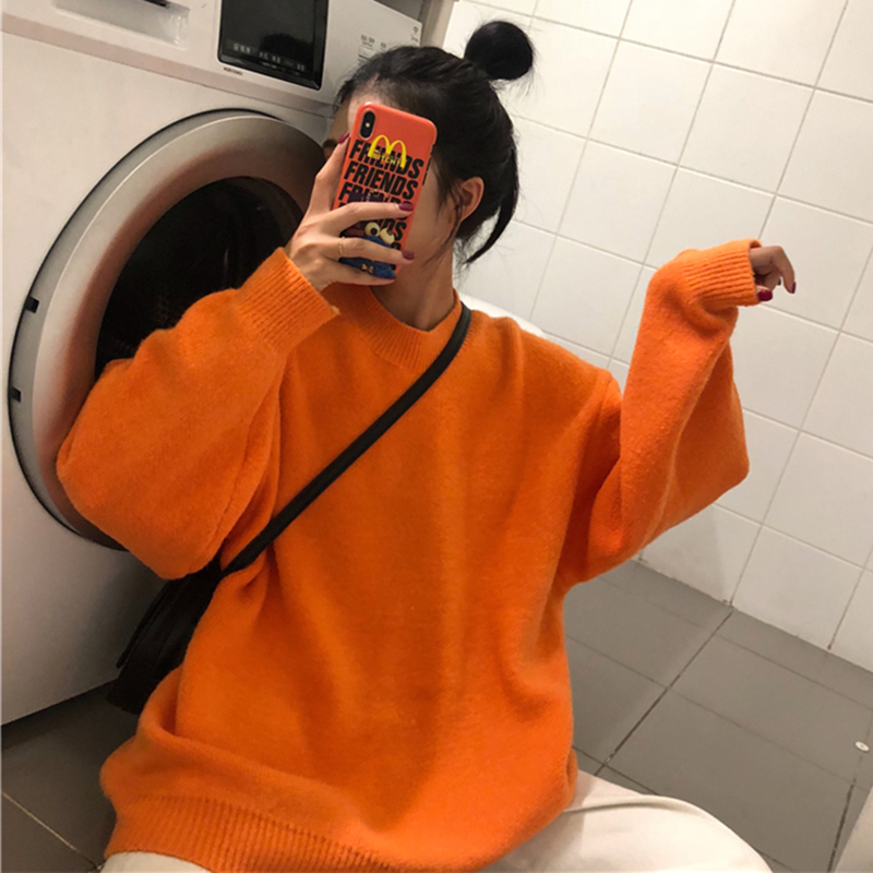/ 慵懶風網紅毛衣女冬裝新款ins超火純色針織外套針織寬松休閑上衣