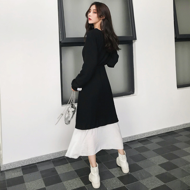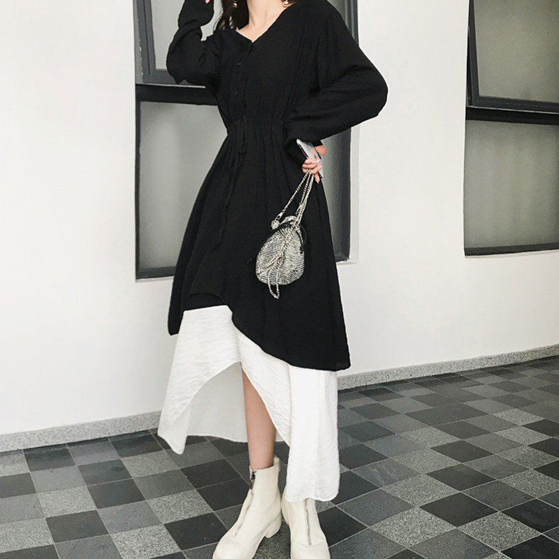 / 女神兩件套女秋裝新款氣質收腰V領長袖襯衫內搭不規則吊帶連衣裙