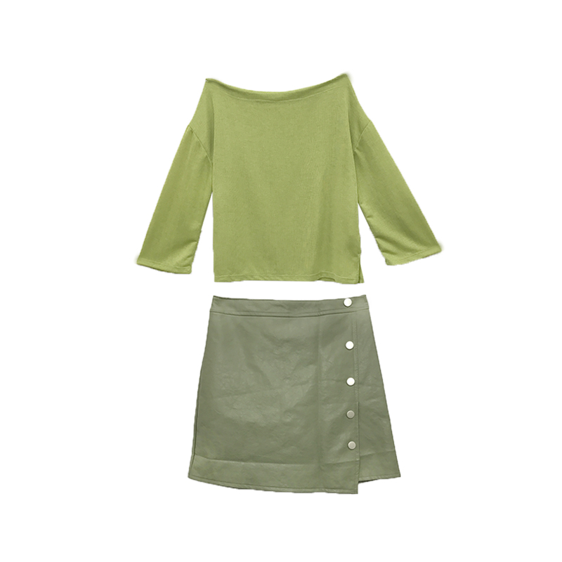 也是綠色系 是很個性特別的灰綠色 加上皮質的料子