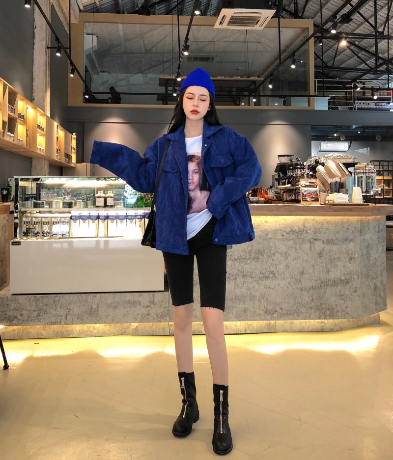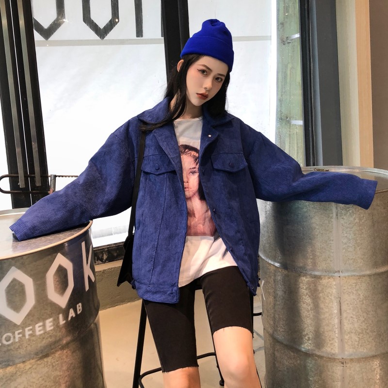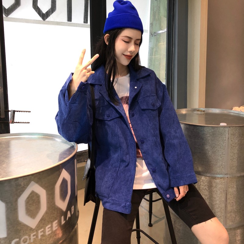 / 韓版港味百搭寬松燈芯絨單排扣中長款棉衣外套女秋冬2018新款上衣