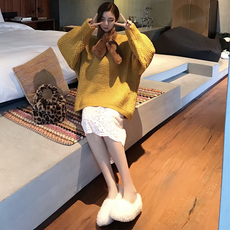 / 赫本風套裝女秋冬新款寬松慵懶毛衣針織外套高腰顯瘦蕾絲半身裙子