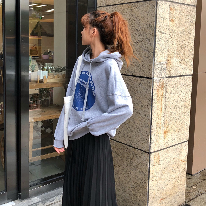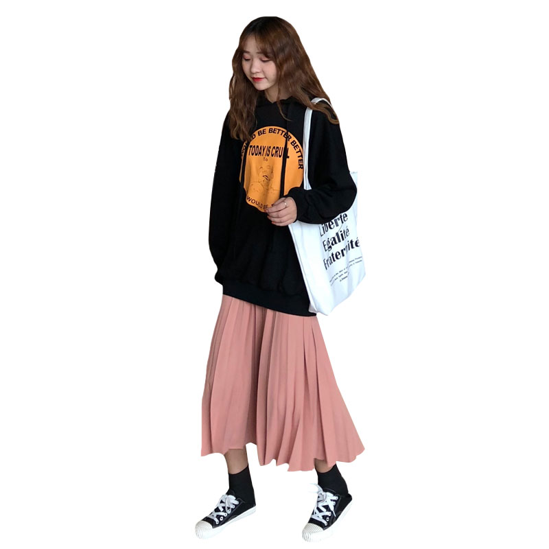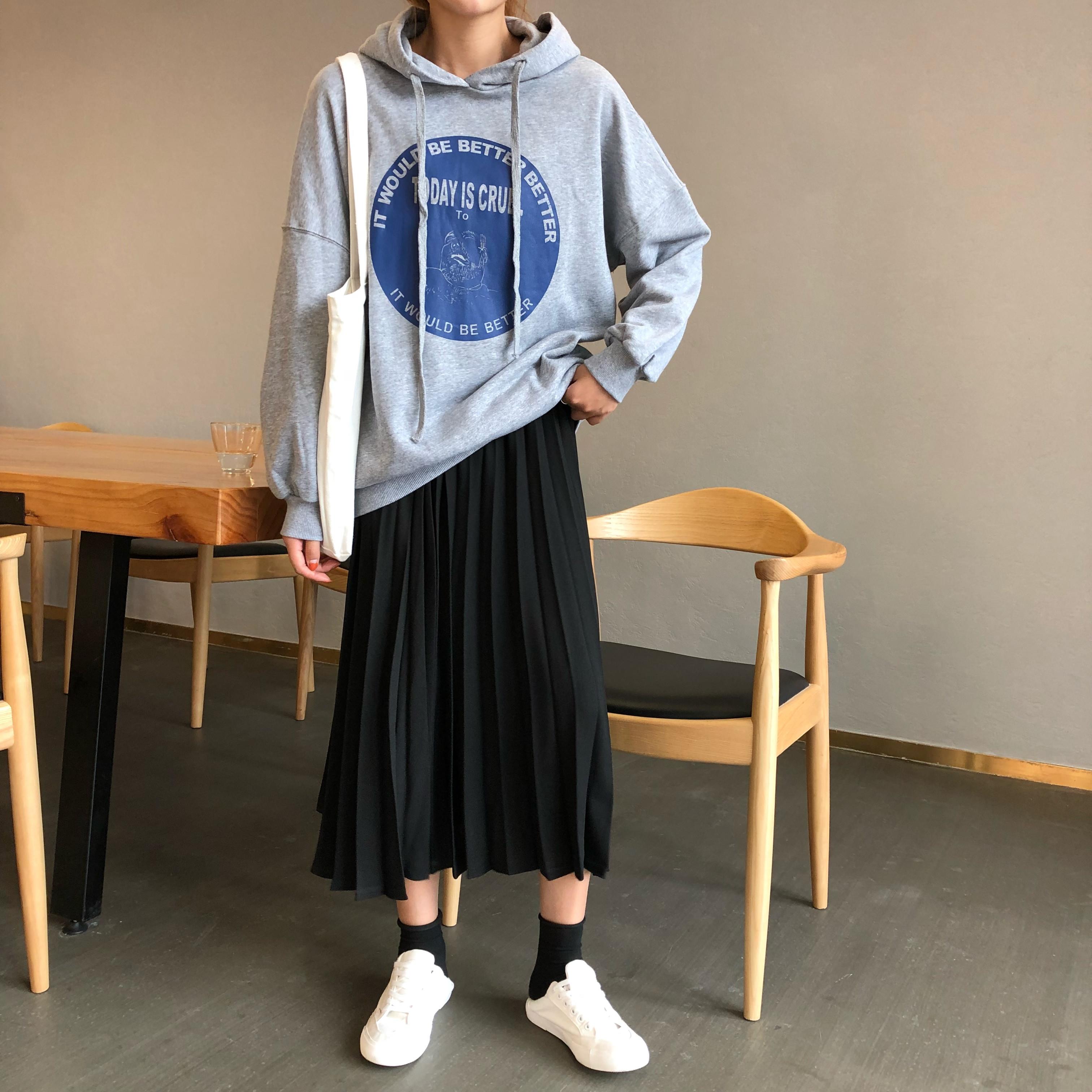 / 韓版時尚休閑套裝秋季女裝chic原宿風連帽衛衣+百褶半身裙兩件套