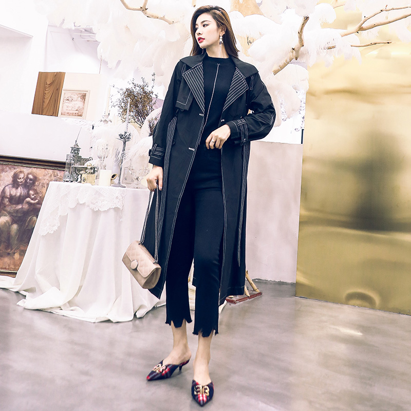 / 歐洲站外套2018新款秋季小個子韓版寬松中長款過膝矮個子風衣女潮