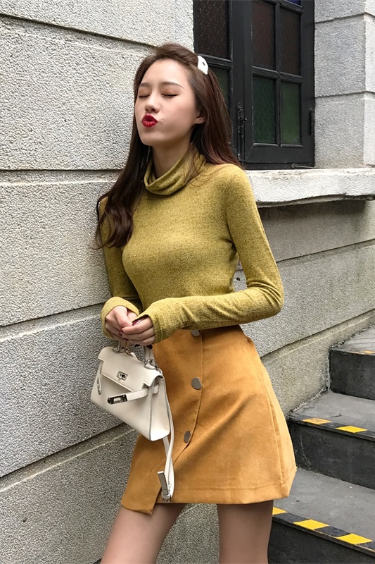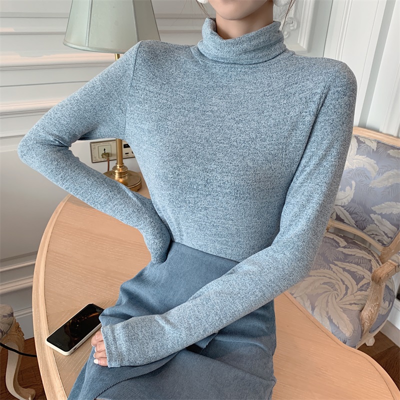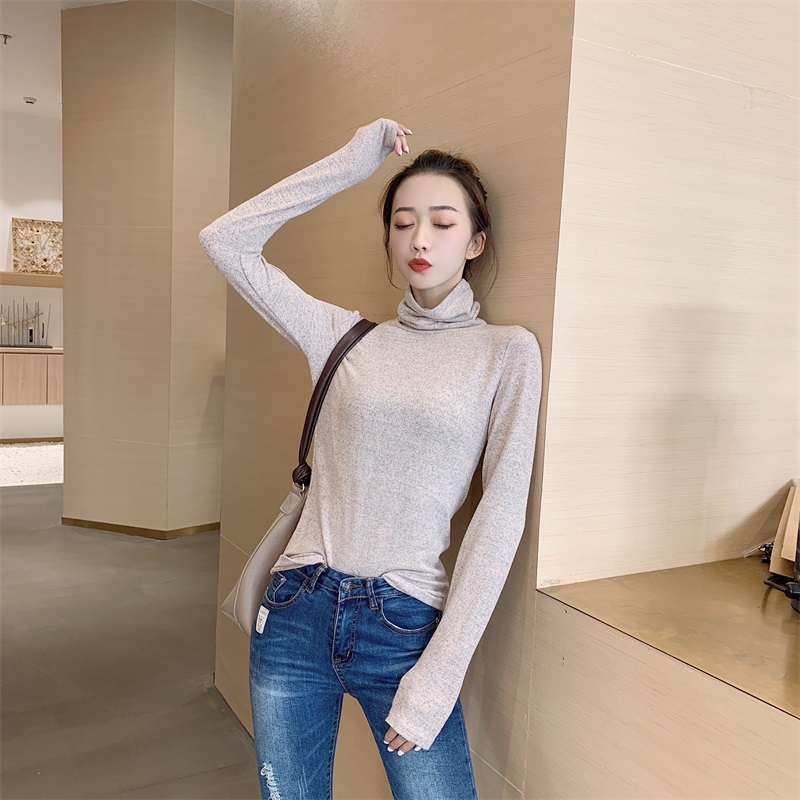 / 韓版時尚冬裝上衣女慵懶長袖t袖女基礎款修身打底高領Tee~六色入