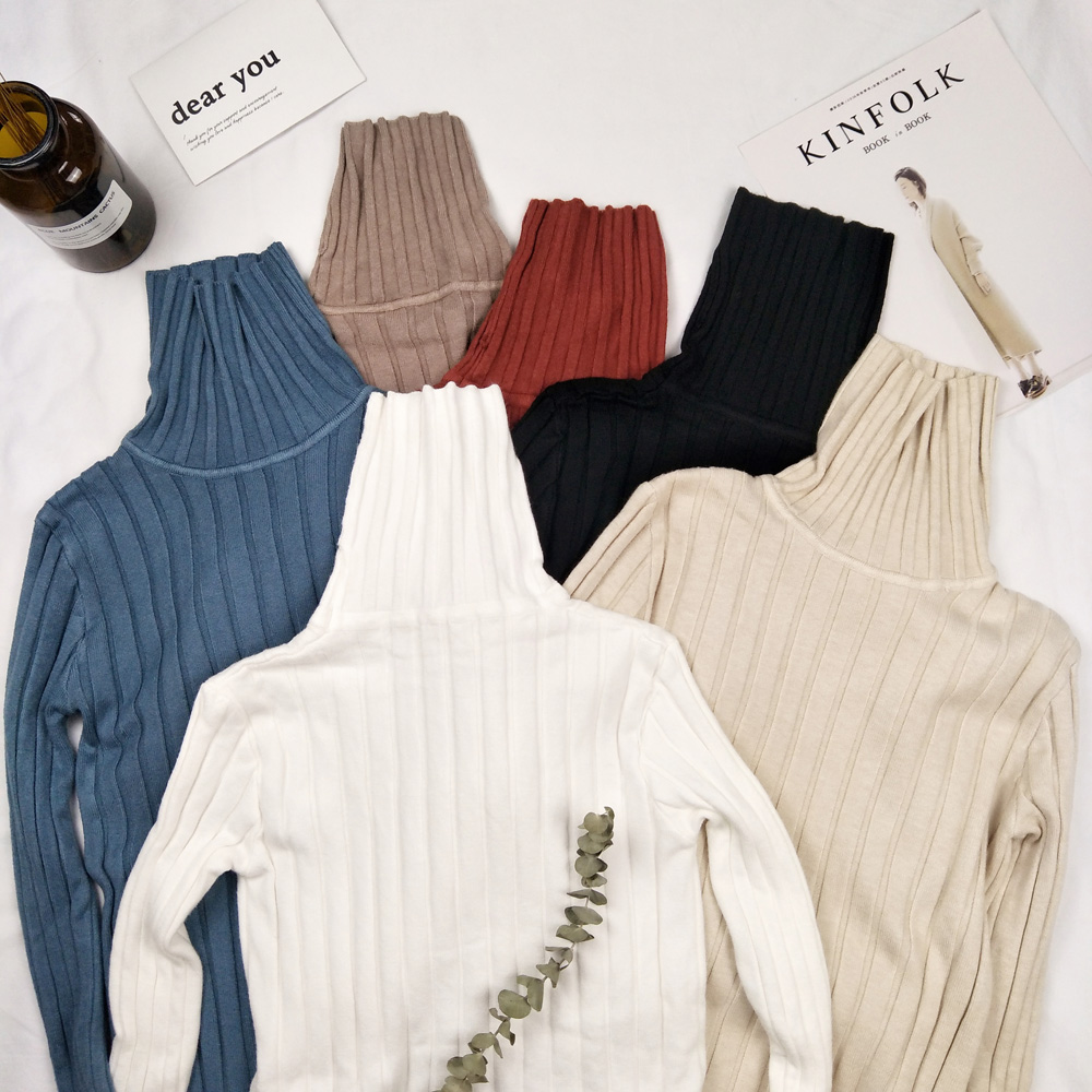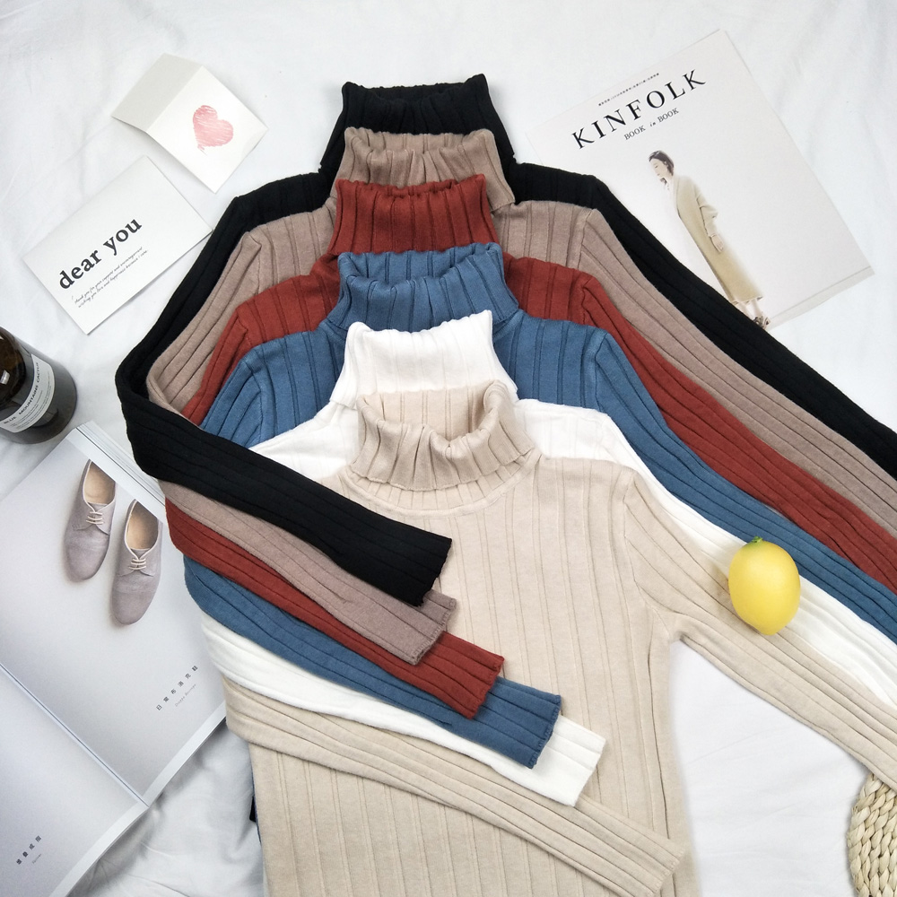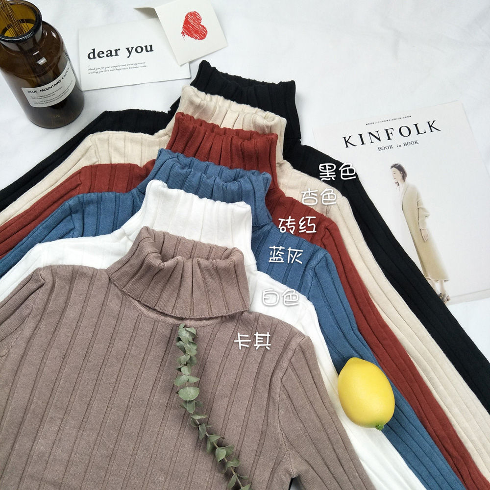 港味復古毛衣女2018新款純色百搭高領坑條針織毛衣打底衫上衣女潮