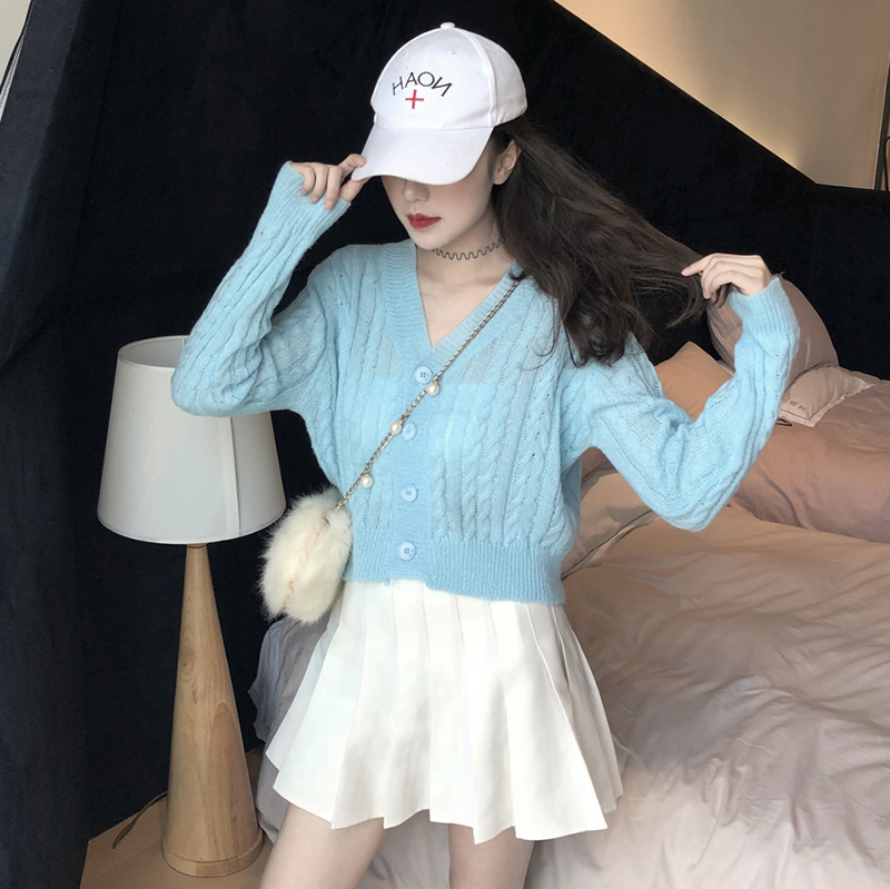 慵懶毛衣女2018秋裝新款韓版寬松V領針織開衫學生休閑長袖短外套