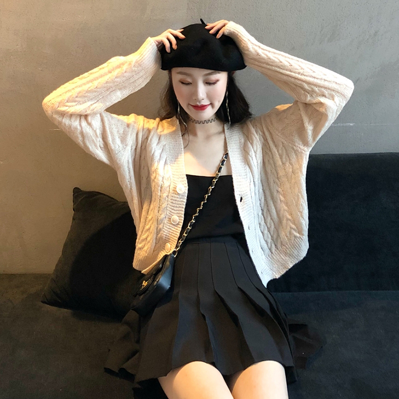 / 慵懶毛衣女2018秋裝新款韓版寬松V領針織開衫學生休閑長袖短外套