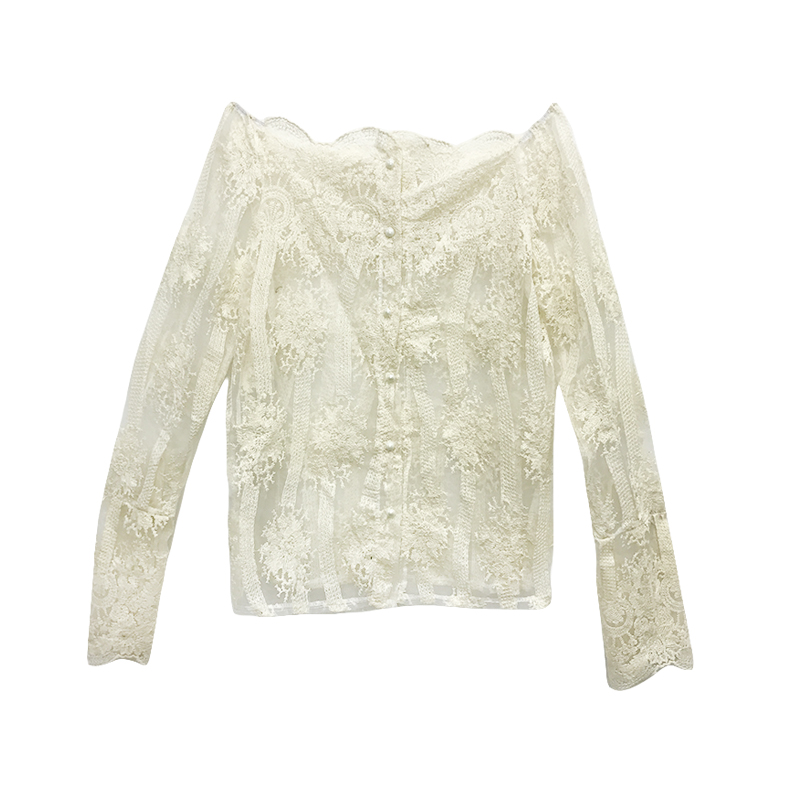 時尚套裝女夏2018新款鉤花蕾絲透視露肩單排扣襯衫+小吊帶兩件套