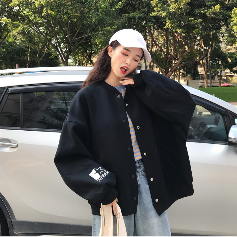/ 2018秋季新款韓版BF風寬松字母貼布繡花長袖棒球服開衫上衣外套女