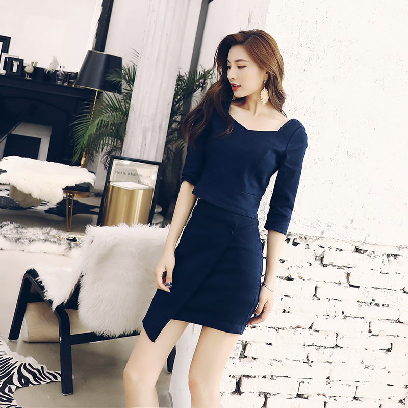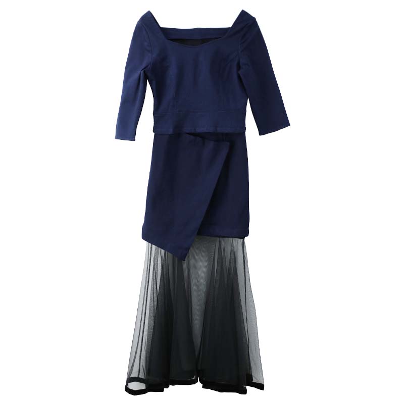 / 歐洲站秋俏皮港味女人味心機復古上衣牛仔拼接網紗短裙三件套裝女