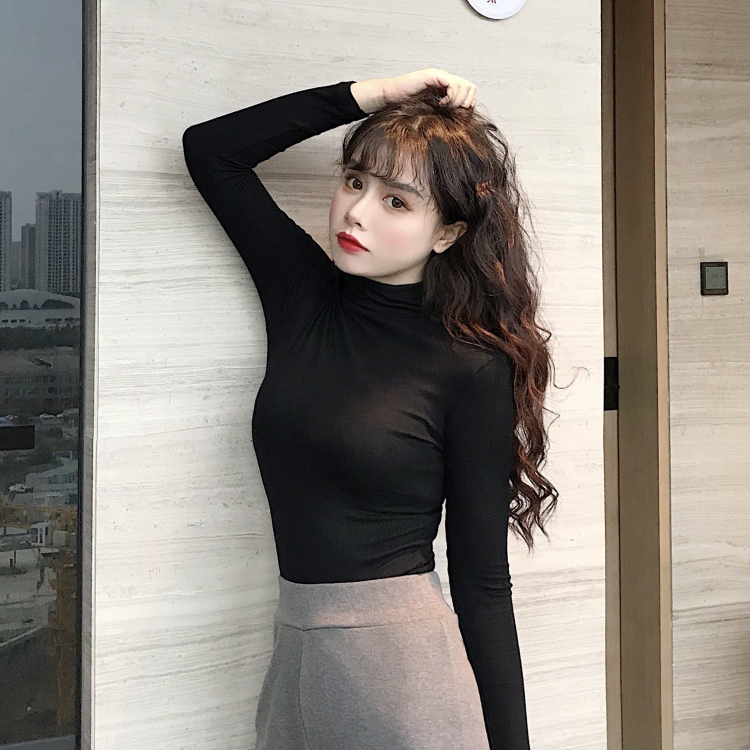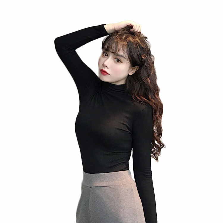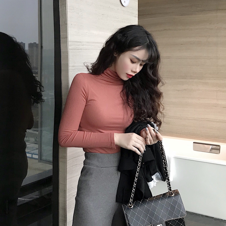 / 冬裝韓版上衣女慵懶長袖t袖女顯瘦高領百搭舒適打底衫長袖T~3色人