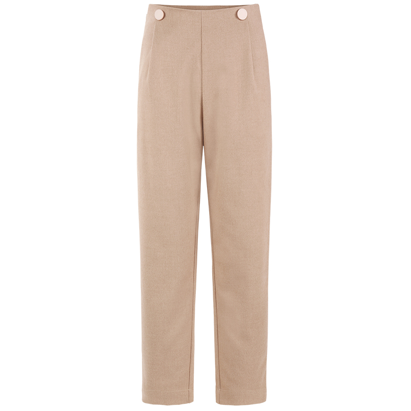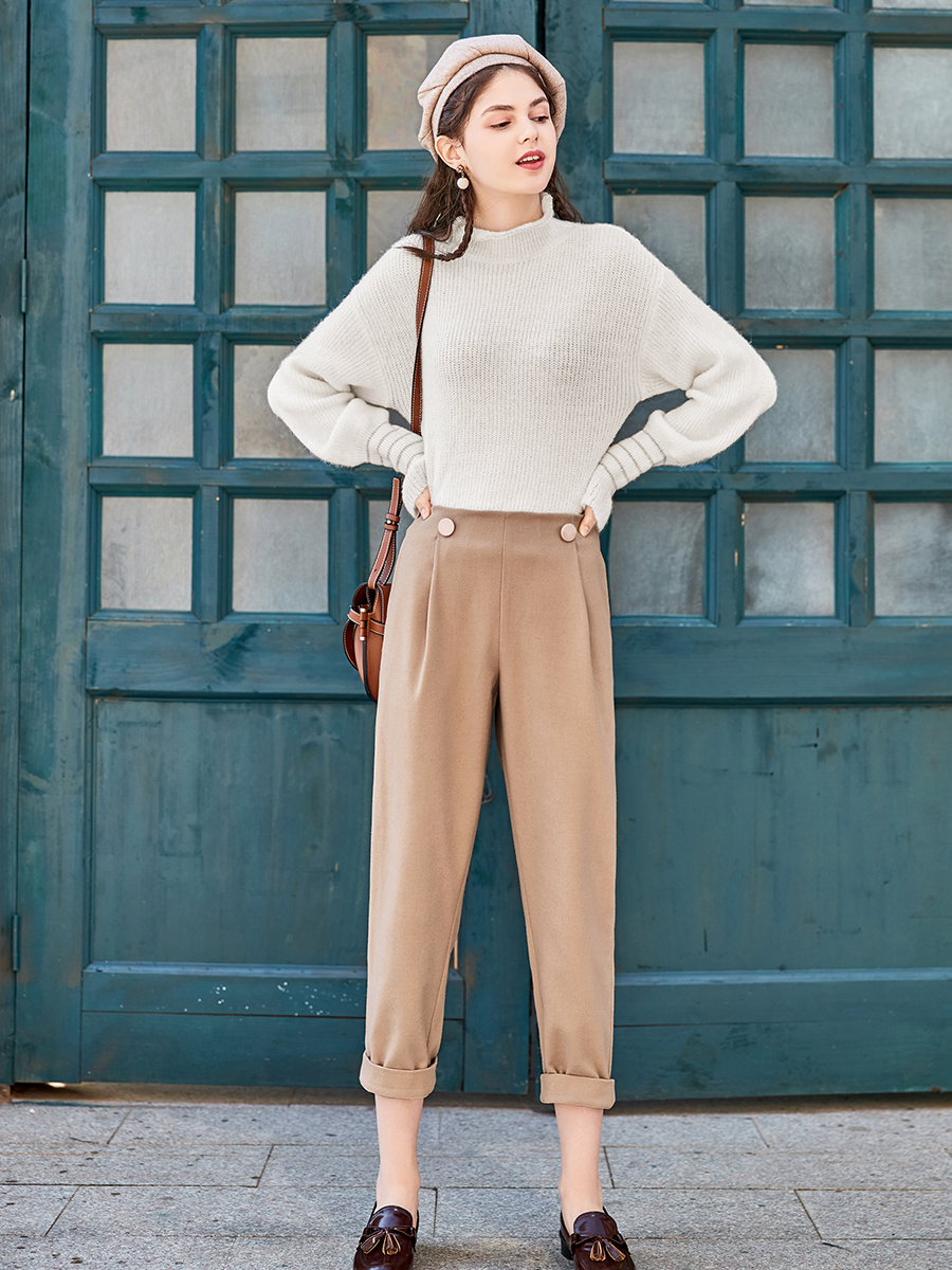 MG小象高腰復古休閑褲女秋冬2018新款寬松顯瘦學生毛呢直筒褲子潮