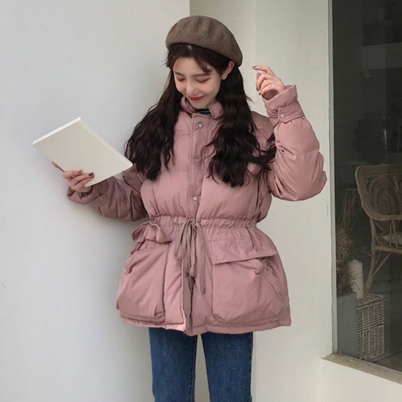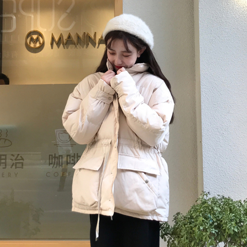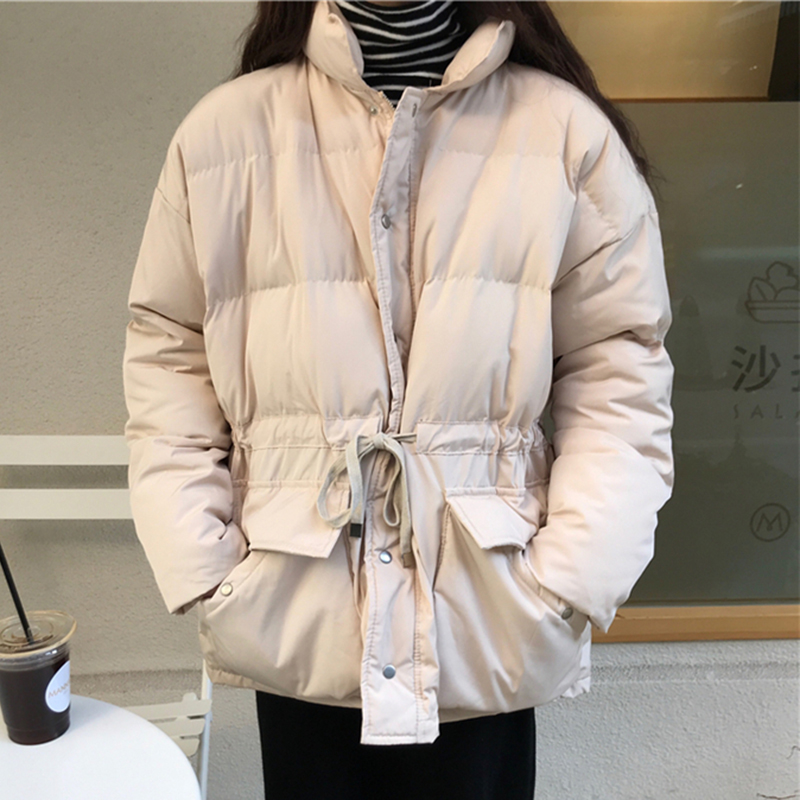/ 氣質抽繩收腰顯瘦面包服女冬裝2018新款韓版中長款寬松加厚外套潮
