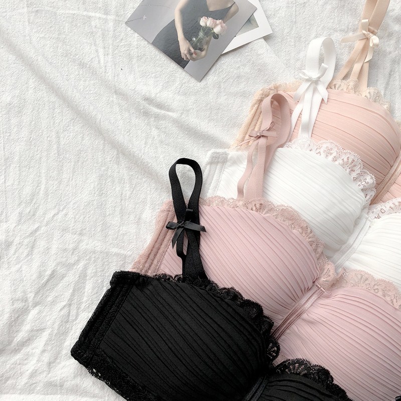 / 韓版時尚百搭無鋼圈少女內衣上托聚攏小胸罩日系蕾絲花邊雪紡文胸